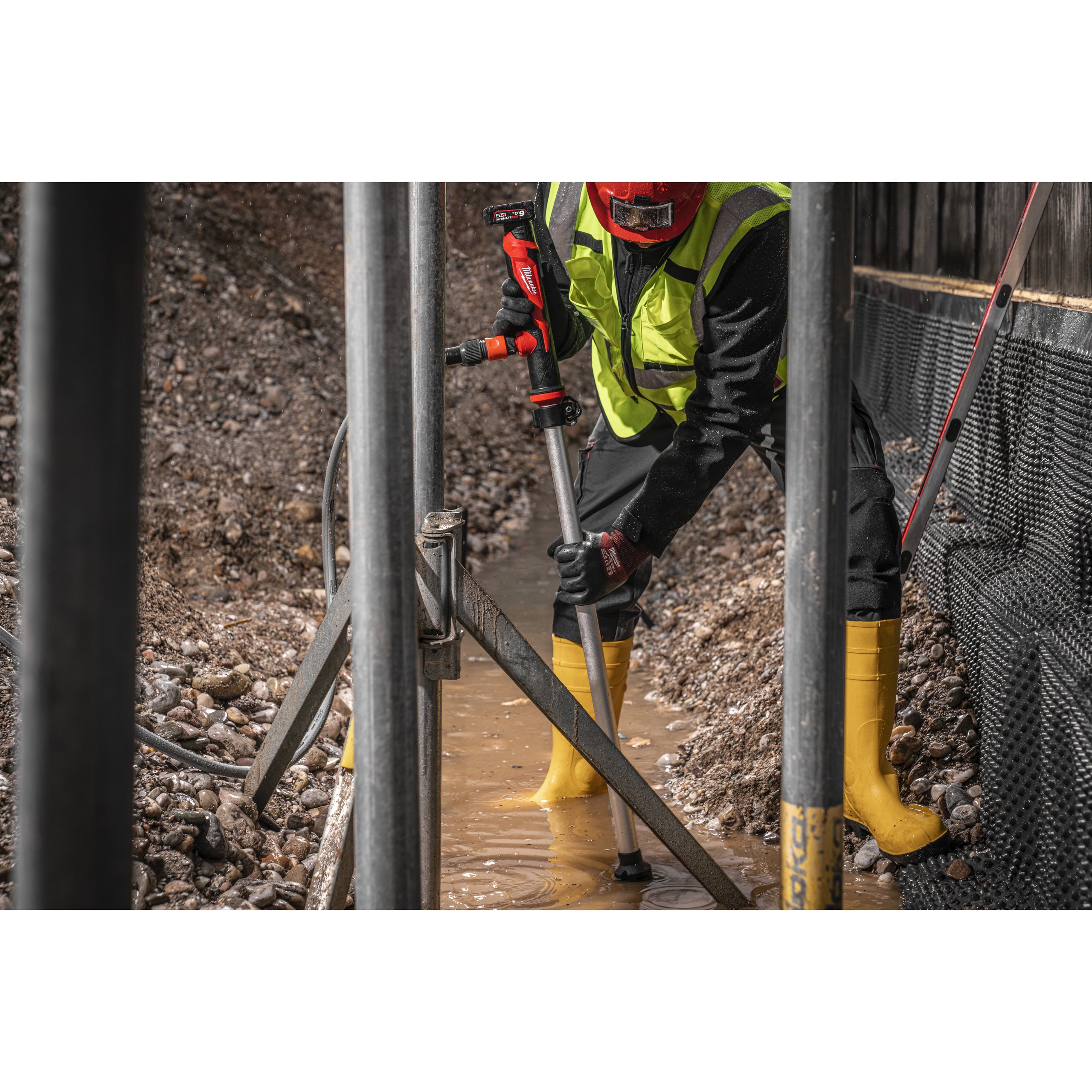 • Pumps more then 2000 l/hour and up to 1000 l on 1x M12™ 6.0 Ah battery, perfect for emptying trenches, storm drains, outside meter boxes, rain barrels and various other applications