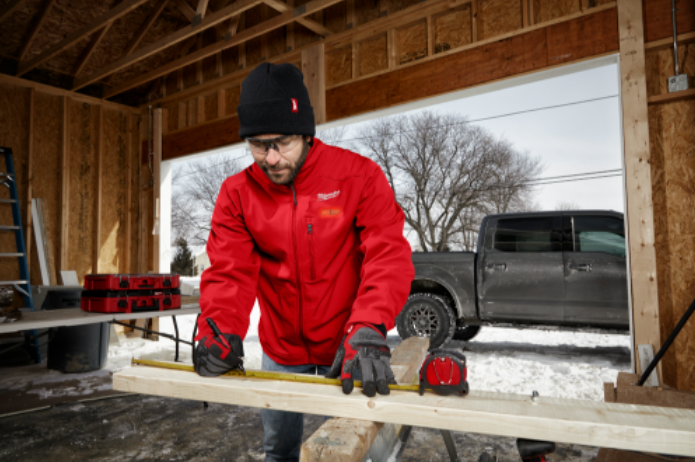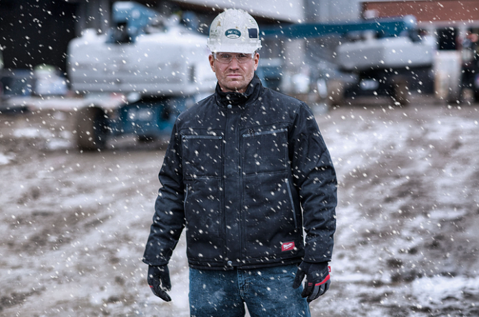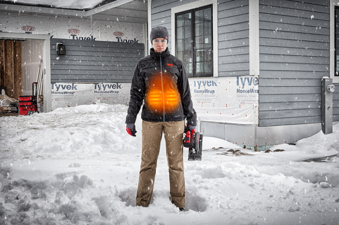 - Wear Multiple Layers: Wearing multiple layers of warm clothing can help your body keep heat in. Combining layers with a heated gear element can offer maximal warmth. For your upper body, you may start with a base layer like a heavy-weight long-sleeve shirt. Over your base layer, you may consider adding a mid-layer like a hoodie, or possibly a heated hoodie. Over your base and mid layers, you’ll then wear a heavy winter jacket, ideally a work jacket built with heavy materials and reinforcements that will withstand harsh jobsite conditions and inclement weather, while also providing enough flexibility to make it comfortable to wear and conducive to productivity. You might also consider a heated jacket. For your lower body, you might consider wearing a pair of heavy-duty work pants or a pair of overalls, possibly a pair of wool thermal long underwear for keeping extra warmth in your legs, and ensure you wear a pair of high-quality winter boots (with superior grip) and some wool socks to keep yourself from experiencing early stages of trench foot like we discussed earlier.